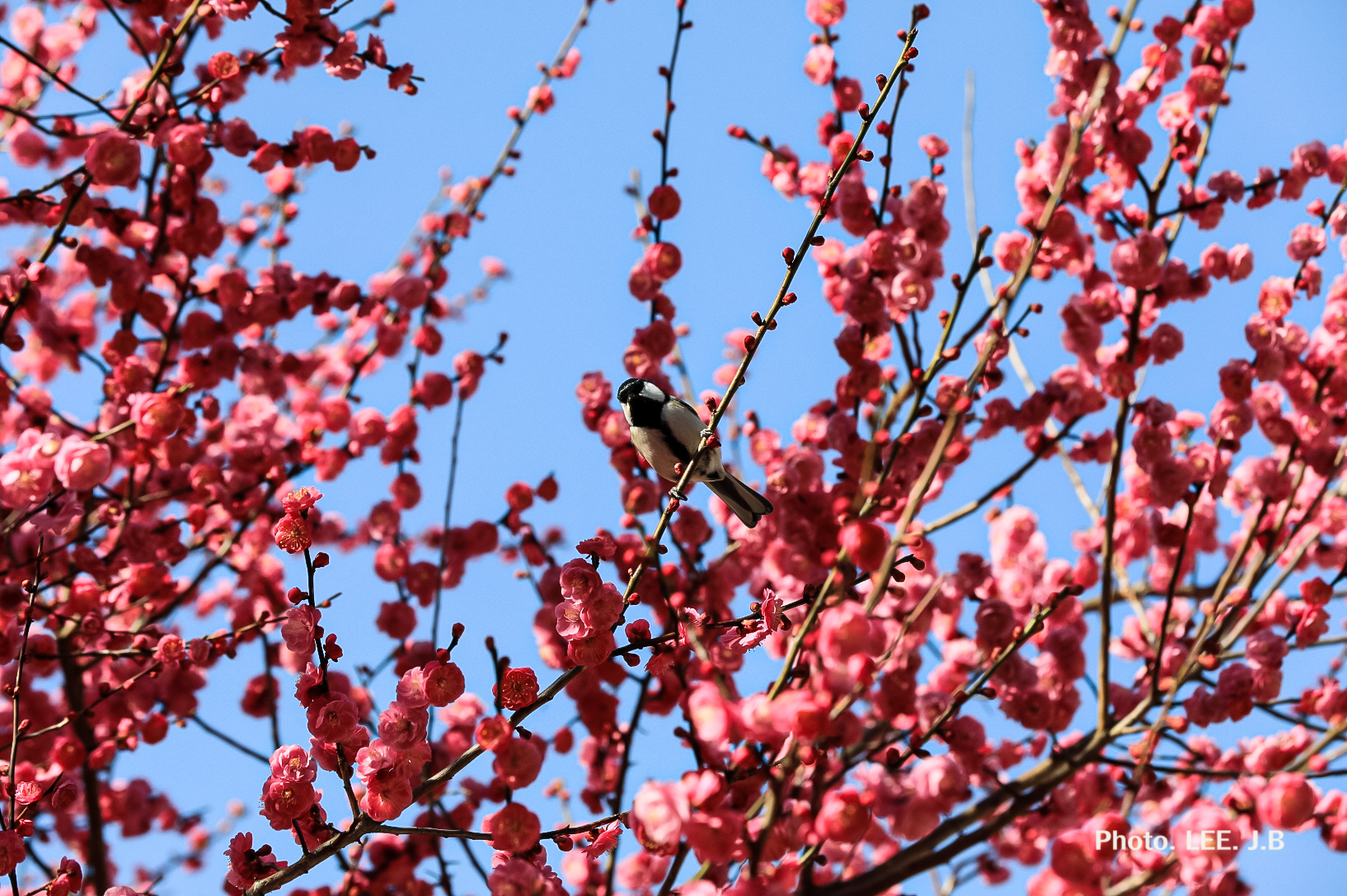 박새 한마리가 꽃 구경 사람 구경하러 왔네요