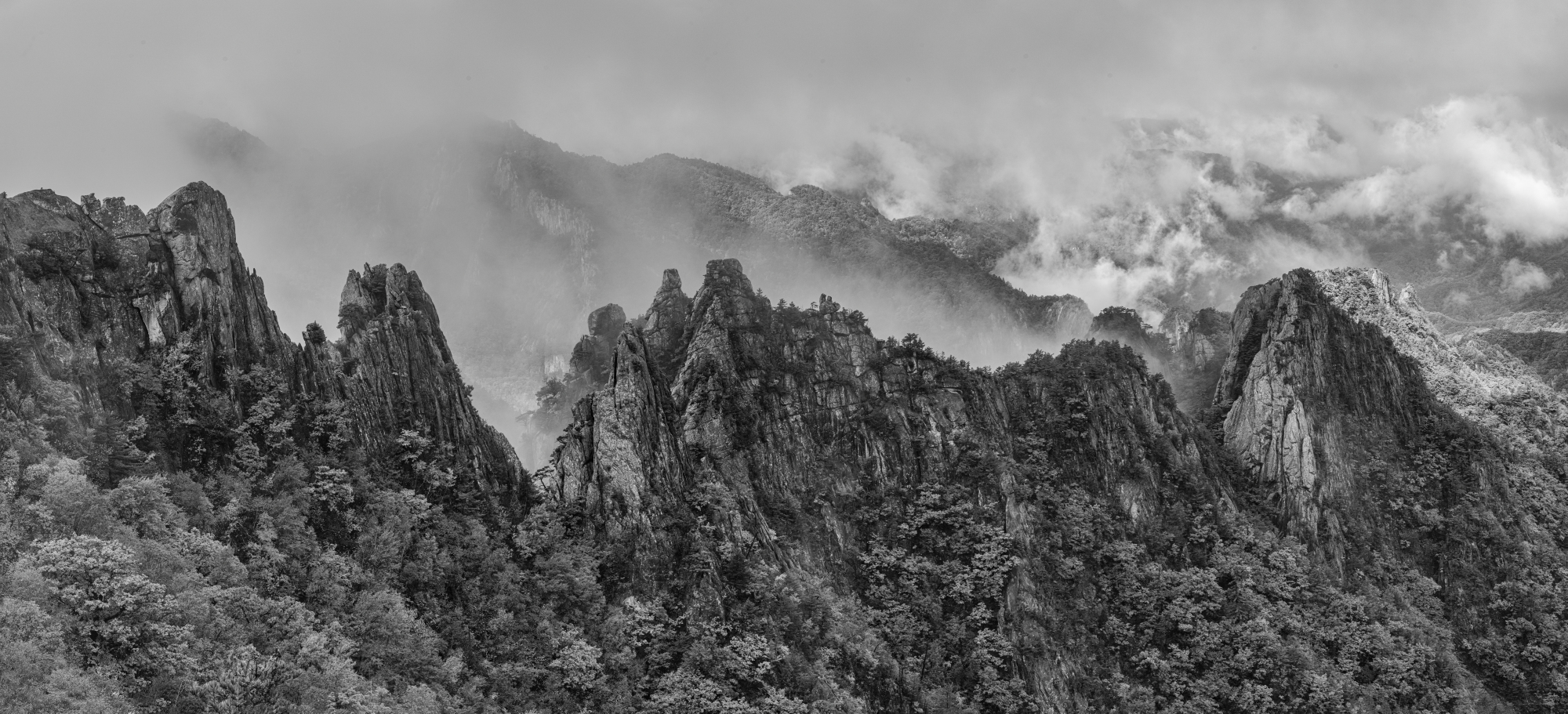 병풍 처럼 둘러쳐진 기암 뒤로 흐르는 운해가 너무도 멋집니다.