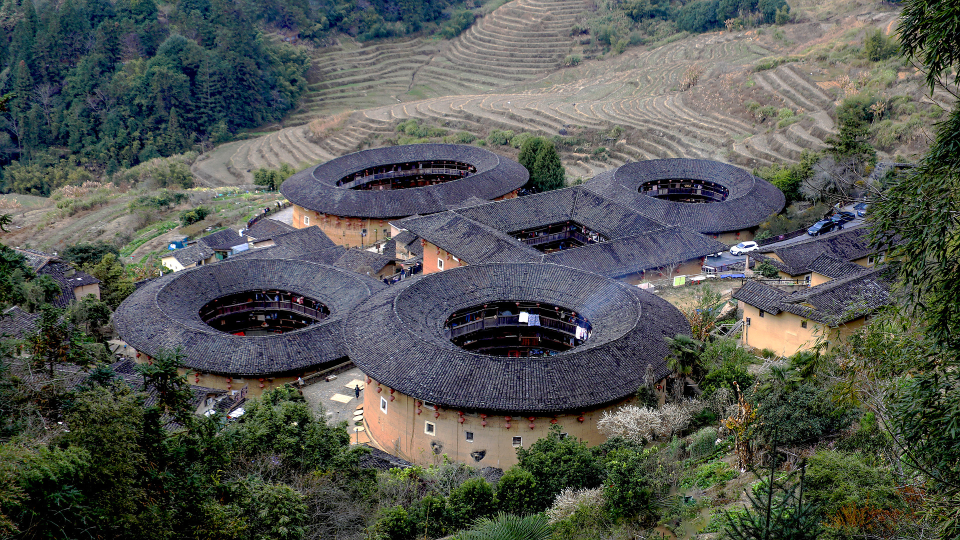 전라갱 토루(3채 1탕)과 유창루 보통 700년 이상된 토루가 지진에도 무너지지 않았다고하며