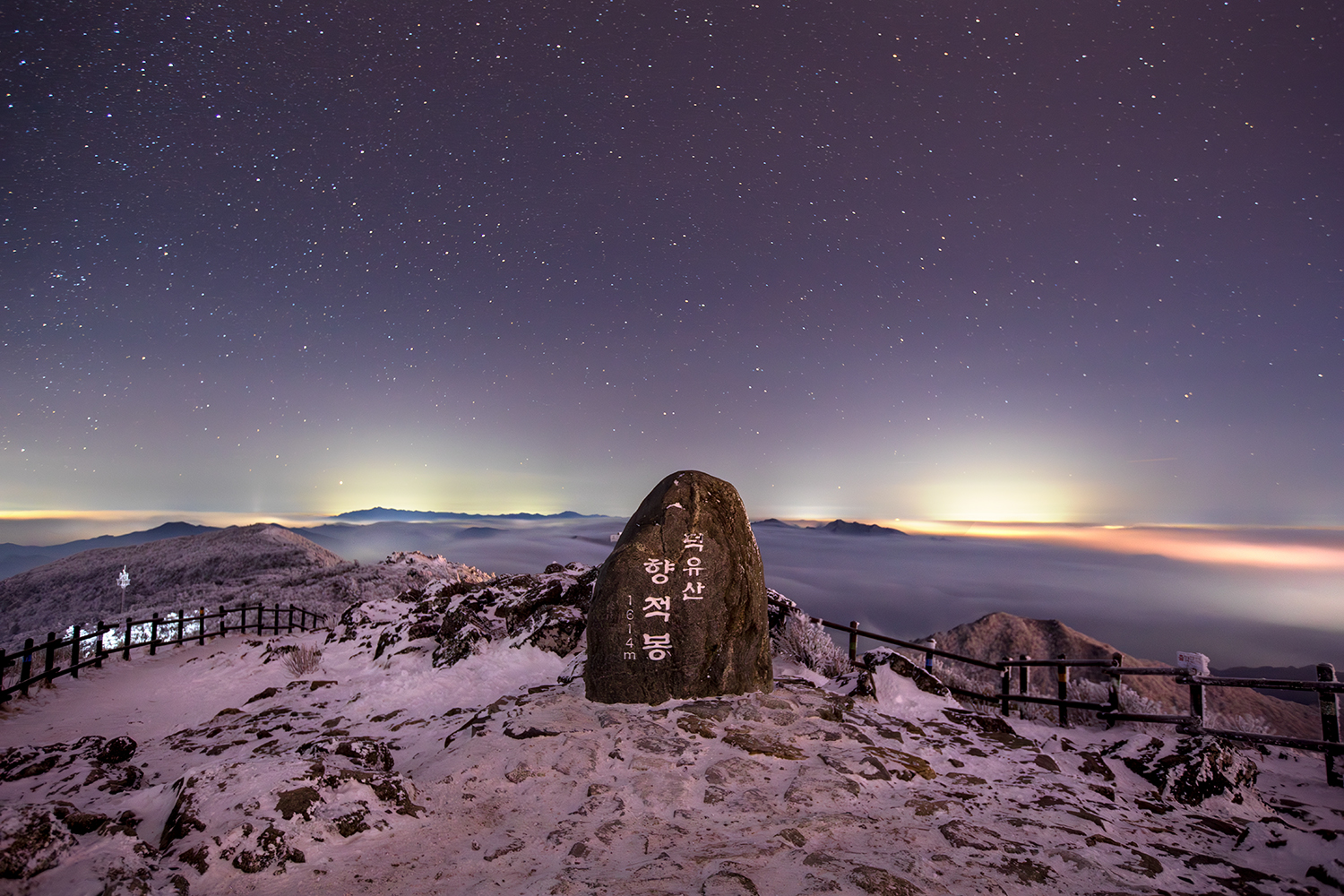 눈소식에 달려간 덕유산 밤 9시가 넘으니 하늘이 열려 버립니다