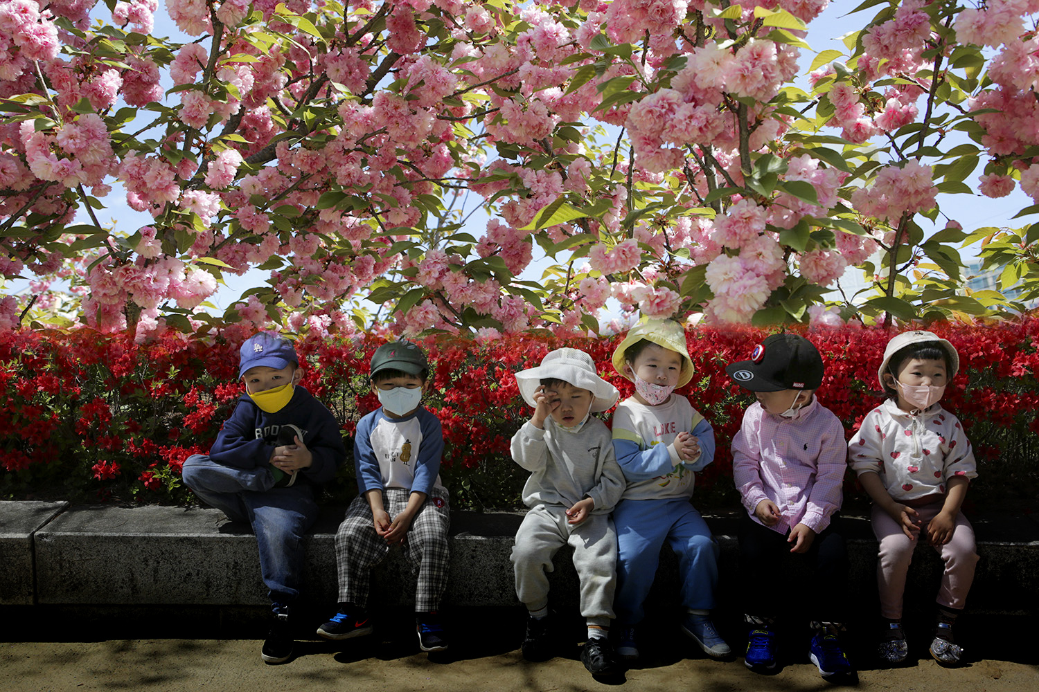 겹벚꽃 아래서 ...
