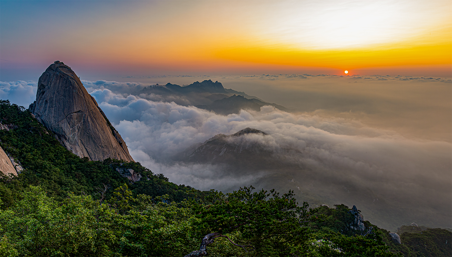 산山 인수봉과 일출풍경