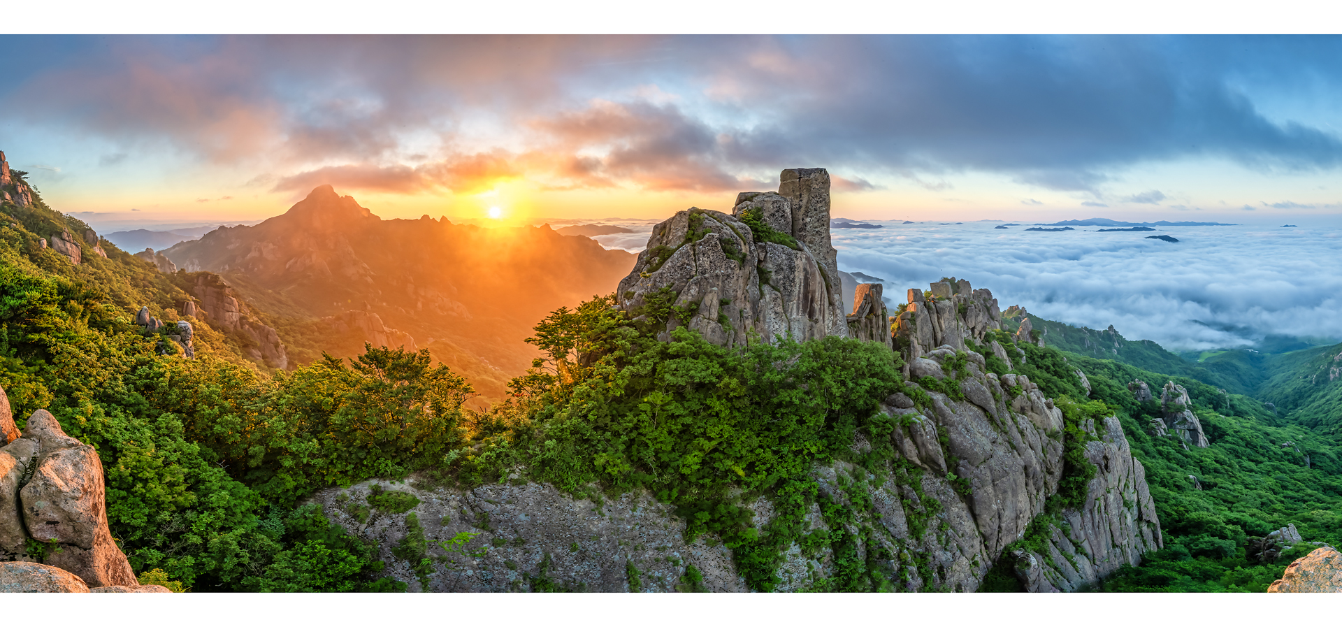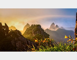 산山 휘날리는 일출안개