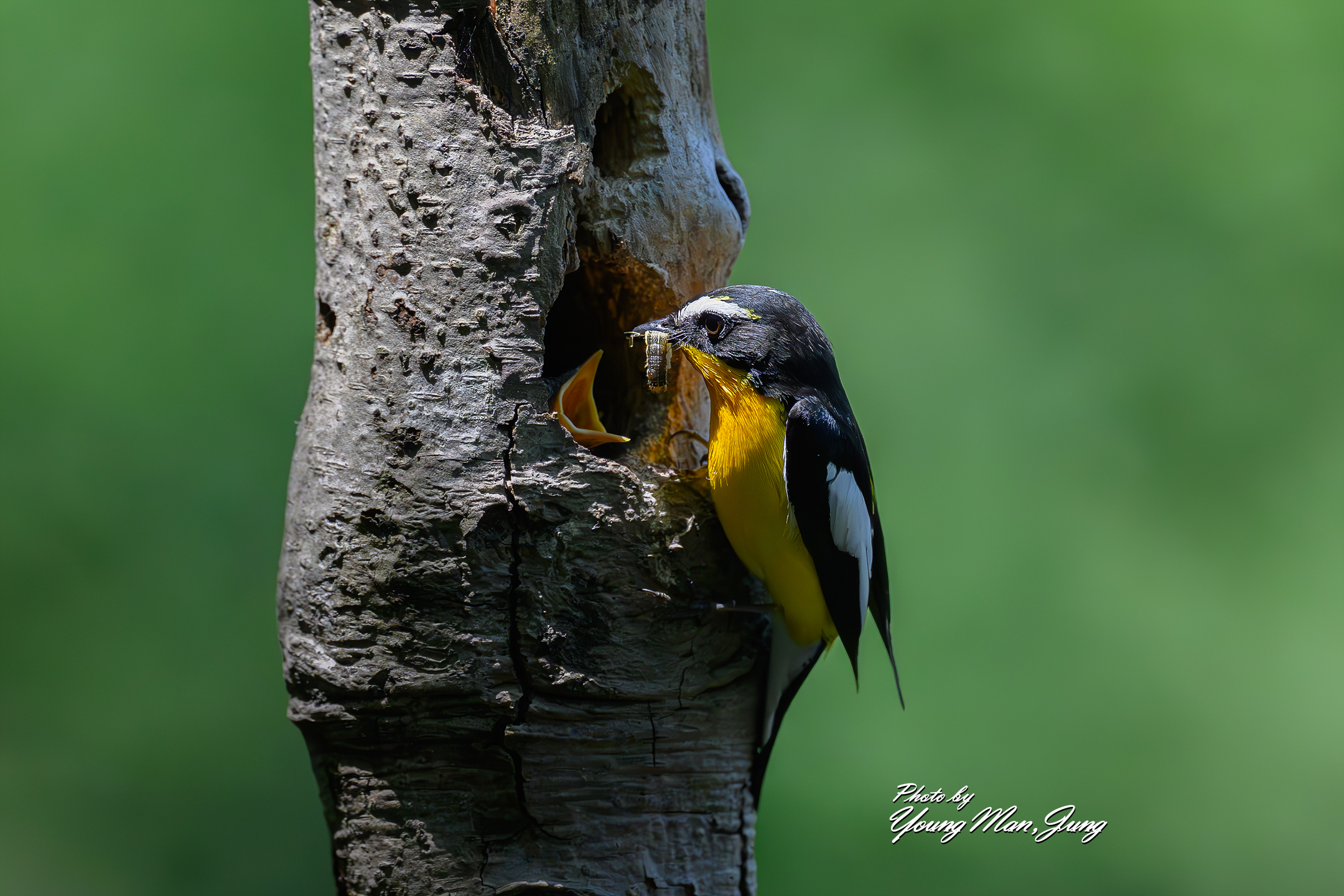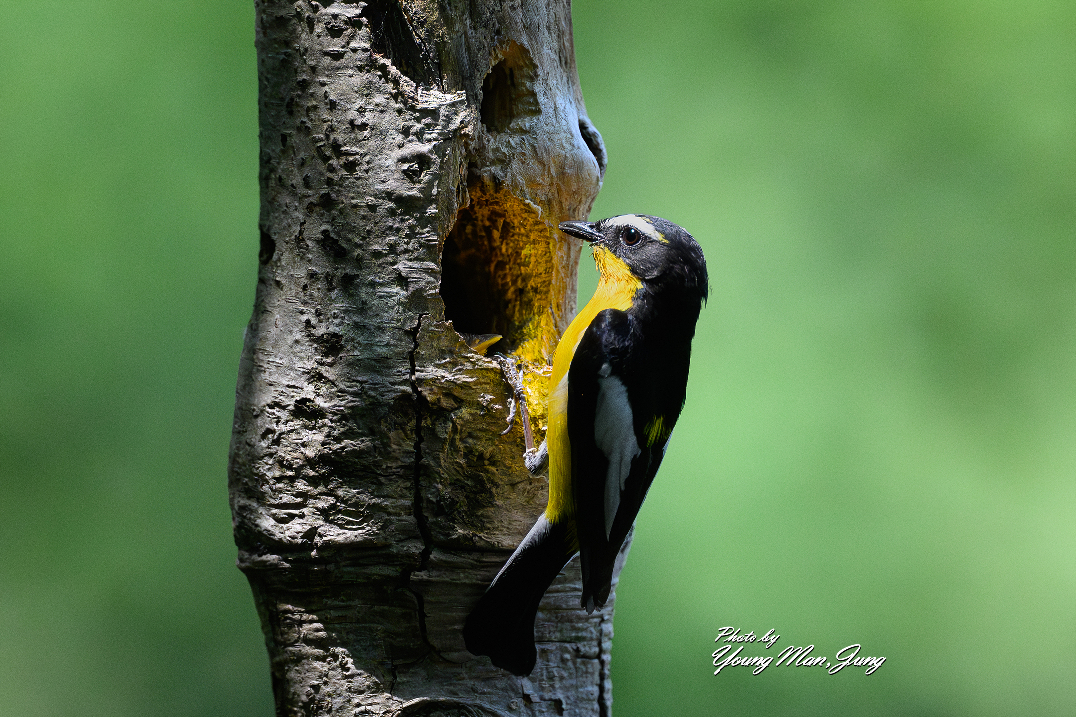 수컷의 노란색이 둥지 속을 비춘다