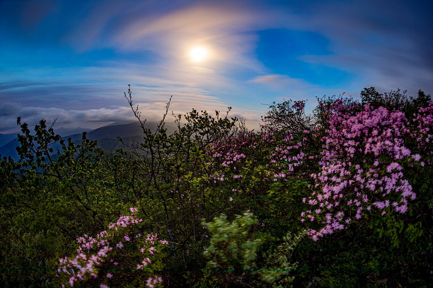 산山 강원도의 새벽달빛