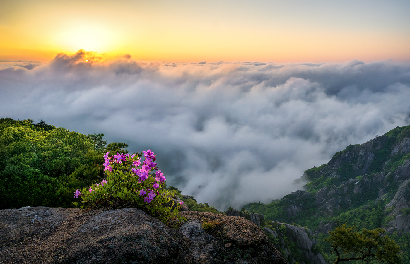 산山 황금빛 아침