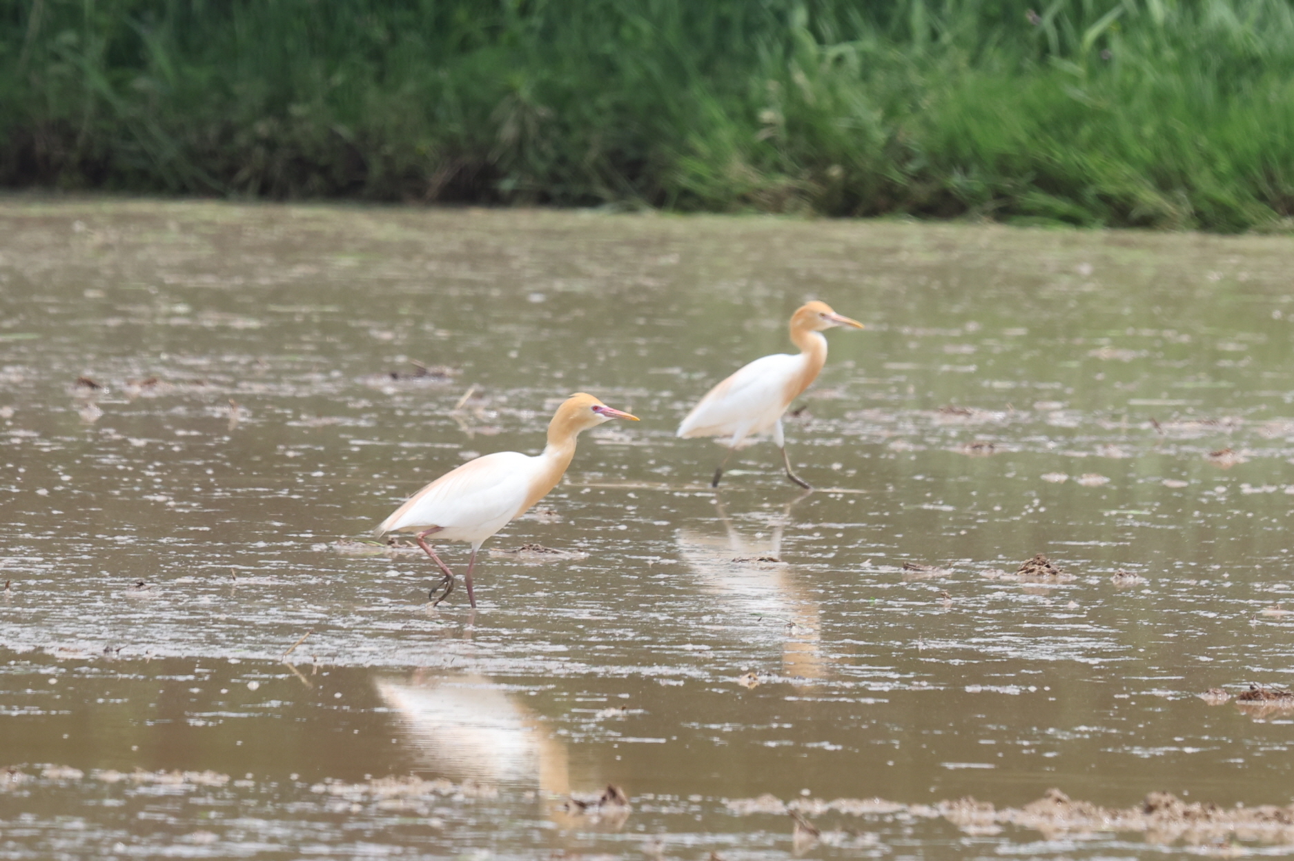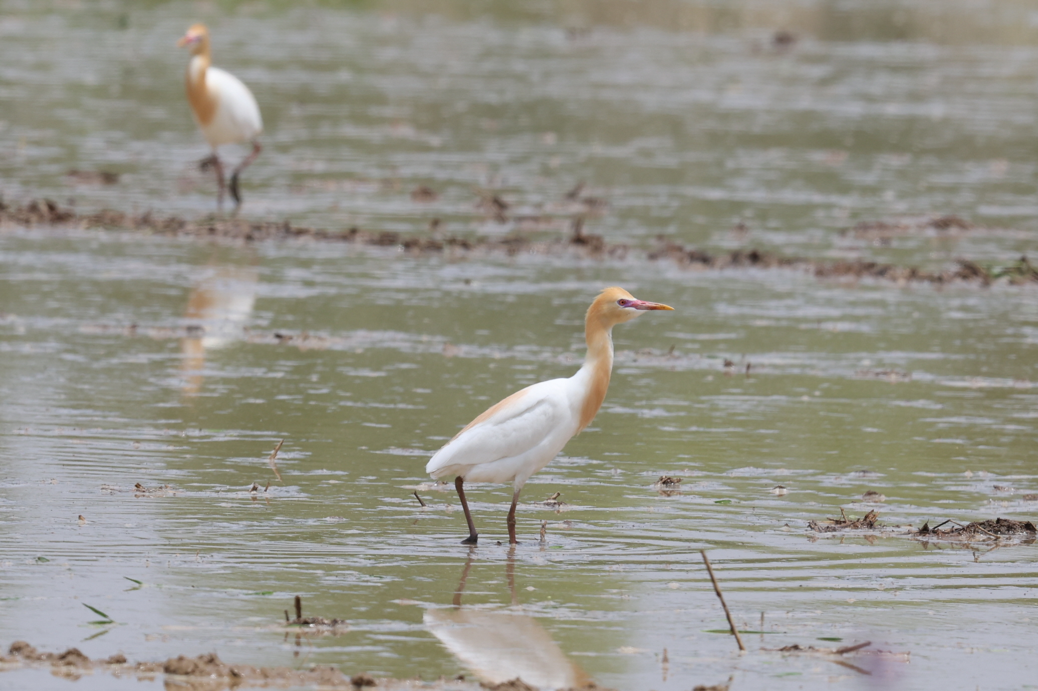 써래질하는 논에 황로들이